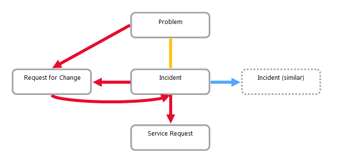 We recommend using the following link types for relations between the records of individual ITIL processes: